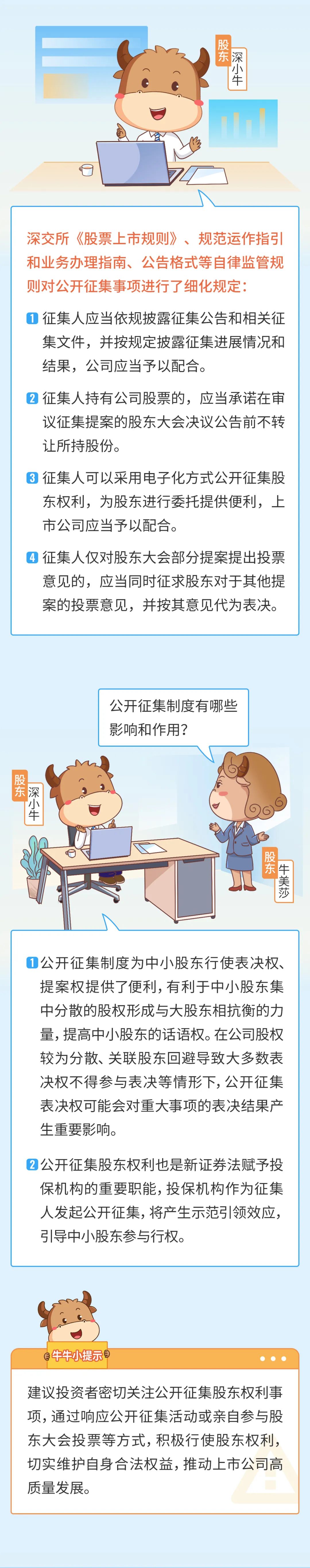 编者按:2022年1月7日,深交所发布整合后的股票上市规则、规范运作指引等上市公司自律监管规则。规则发布以来,公司治理、股东权益等方面的内容备受关注。为帮助投资者更好理解相关规则,深交所特别推出自律监管规则“知多少”系列图文解读。本期介绍公开征集股东权利相关内容,一起来看看吧。